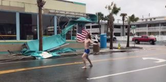 Kasırgaya Slayer ve Amerika Bayrağı ile Karşı Gelen Adam Geri Döndü
